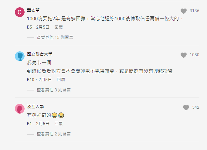 雖然借錢還錢是一件天經地義的事情,但畢竟這樣的經驗實在是太難能可貴,因此文章曝光之後也立刻在網路上引起一陣討論,不少網友都紛紛感慨讚嘆,「有夠神奇的」、「別看區區1000元,那也是錢,我借給別人的也是一去不回」、「1000還記得兩年,重點還會還」、「我國一借同學四百,國二分班後我們就沒什麼聯絡,結果到高二還高三的時候突然密我,然後轉帳給我一千說多的當利息」