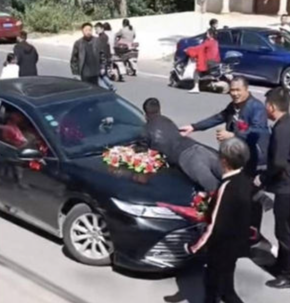 據陸媒報導,此事發生在河南信陽的某戶人家。當時,新郎已經開禮車浩浩蕩蕩地到新娘家迎娶,而新娘也準備上車離開。但此時,新娘的哥哥卻突然追了上去,並向新郎再次索討聘金加價,聲稱若新郎不給就不能走。然而,新郎對此並不同意,新娘哥哥竟直接趴在禮車上,眾人也無法將他拉下,只能任憑他大鬧現場。