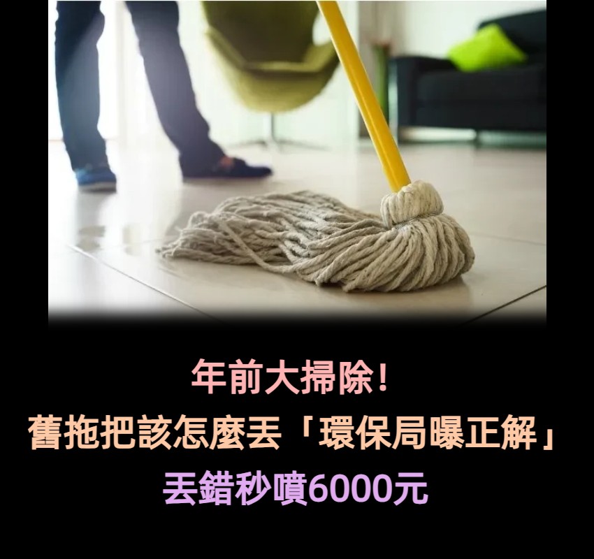 年前大掃除「舊拖把該怎麼丟」?正確丟法曝光「丟錯罰6000元」