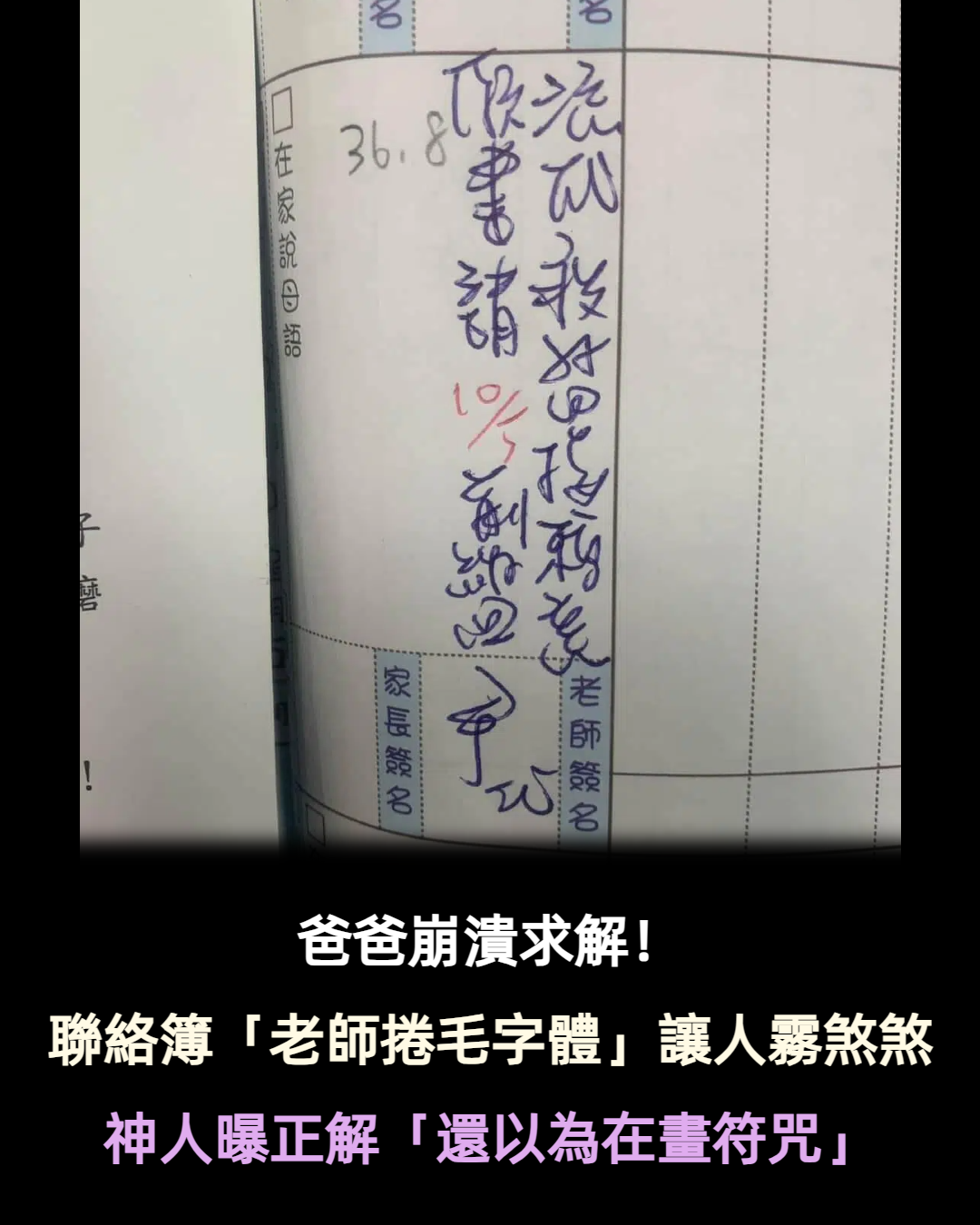 誰能看得懂!聯絡簿上「老師捲毛字體」爸爸霧煞煞 神人曝正解「還以為在畫符咒」無奈:在宮廟工作?