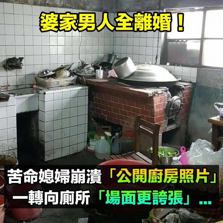 婆家男人全離婚!苦命媳婦「公開廚房照片」痛訴悲情經歷 廁所照更誇張.... 中距離神射手 2026-01-26 檢舉 分享到 Facebook 圖片來源:爆怨公社 臉書許多網友也勸告原PO要懂得保護自己,「還等什麼現世報?這位施主妳快逃比較要緊」、「娶一個就要顧到他們一家子,還要自己倒貼,覺得你跟你老公搬出去吧」、「與其空等現世報,倒不如勇敢點,拒絕這樣的苦差事」、「娶傭人嗎?要是我早就跑了」。圖片來源:爆怨公社 臉書 Advertisements 還是希望原PO快逃吧,就算沒被婆家操死,心理狀態遲早會出狀況的!資料來源:TEEPR亮新聞 Advertisements 回首頁 2/2 Advertisements 編輯精選推薦 More + 狠斷8年婚!一線小生「被爆淨身出戶」終於離婚 認了「像被雷劈到」才會娶她 空窗多年!68歲陳美鳳突羞認「身邊有個他」 40年前就認識「遭男方母親拆散」 愛上大22歲已婚天王!最強狐狸精「靠生兒逼走原配」入主豪門 30年後「近況讓人直搖頭」:太不堪了... 婆婆答應幫做月子!剛生完「老公卻帶公婆一家5口出國玩」 人妻「默默打了2通電話」尪慌了:不可能 85歲失智父身亡!林葉亭突宣布「皈依佛門」 遇大師「開示一番話」忍不住淚崩 台灣大咖病逝「享壽83歲」!周遊告別式痛哭「認婚內出軌」:兒子很恨我... 22歲愛女病逝!資深男星「走不出喪女痛」留白長髮現身 掛骨灰項鍊「代女做1事」惹淚 台中要加發每人5萬元?盧秀燕最新回應:「1條件」就發錢 弟成植物人、姊猝逝!玉女歌手「遭前夫設套」騙走娘家房產 「狠斬16年婚姻」近況曝 功德圓滿了!台語歌后「悲曝他離世」享壽95歲 淚喊:去當快樂的神仙吧... 曾比江蕙紅!台語歌后「爆未婚生子」遭指指點點 「2次手術害癱瘓」72歲近況曝 本土劇女星生了!7年前凍卵「終於來到我身邊」 歌手尪嗨喊:生個足球隊 離婚11年!洪榮宏愛女結婚「終破冰前妻」 「2爸爸牽她進場」催淚畫面曝 他真的每天都在...具俊曄「暴瘦坐墓園」天天伴亡妻 粉絲直擊「悲傷身影」淚:最深情男人 一周至少45次!52歲男子「癌症晚期」醫生嘆:勸他多次,就是不改 24歲兒失明!于美人爆「他在飯店掃廁所」維生 不盼紅包只求「別再花我的錢」 趕在40歲前閃婚!八點檔女星「宣布嫁給他」 尪驚人身分曝「媒人是柯叔元」 最新/3度中風送醫!資深男星爆離婚「斷50年髮妻」 「砸1億淨身出戶」家族爆紛爭 15歲兒「睡夢中離世」!本土女星「送愛子火化」求做1事 「PO照圓滿了」:媽媽和你永不分開 以為只是小感冒!本土女星悲痛證實「他併發肺炎過世」 一度淚灑現場「後悔同意插管」 晚年隱居台東!68歲名主持失蹤「車內身亡」 伴侶悲曝「死前做1事」:還掛念著我 台語歌后慟別摯愛!告別式上認「早隱瞞病情」 道歉哭喊:原諒我簽放棄急救 65歲男星獨居暴斃!大咖女星放下恩怨「送前夫最後一程」 昔遭動手6年嘆「死者為大」 最新/賈靜雯深夜慟曝「她已離世」 淚PO合照喊:真的好愛你... 婚變尪落跑!單親媽「獨扛千萬債養孩」到處躲黑道 「一開口驚艷眾人」熬成台灣歌后