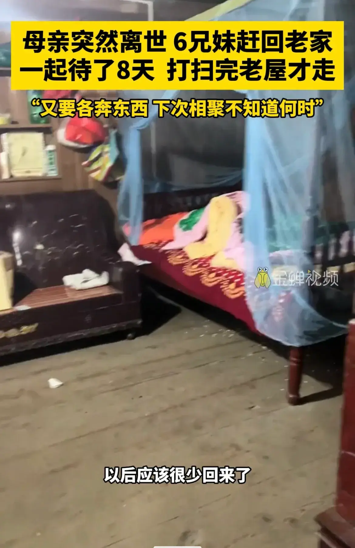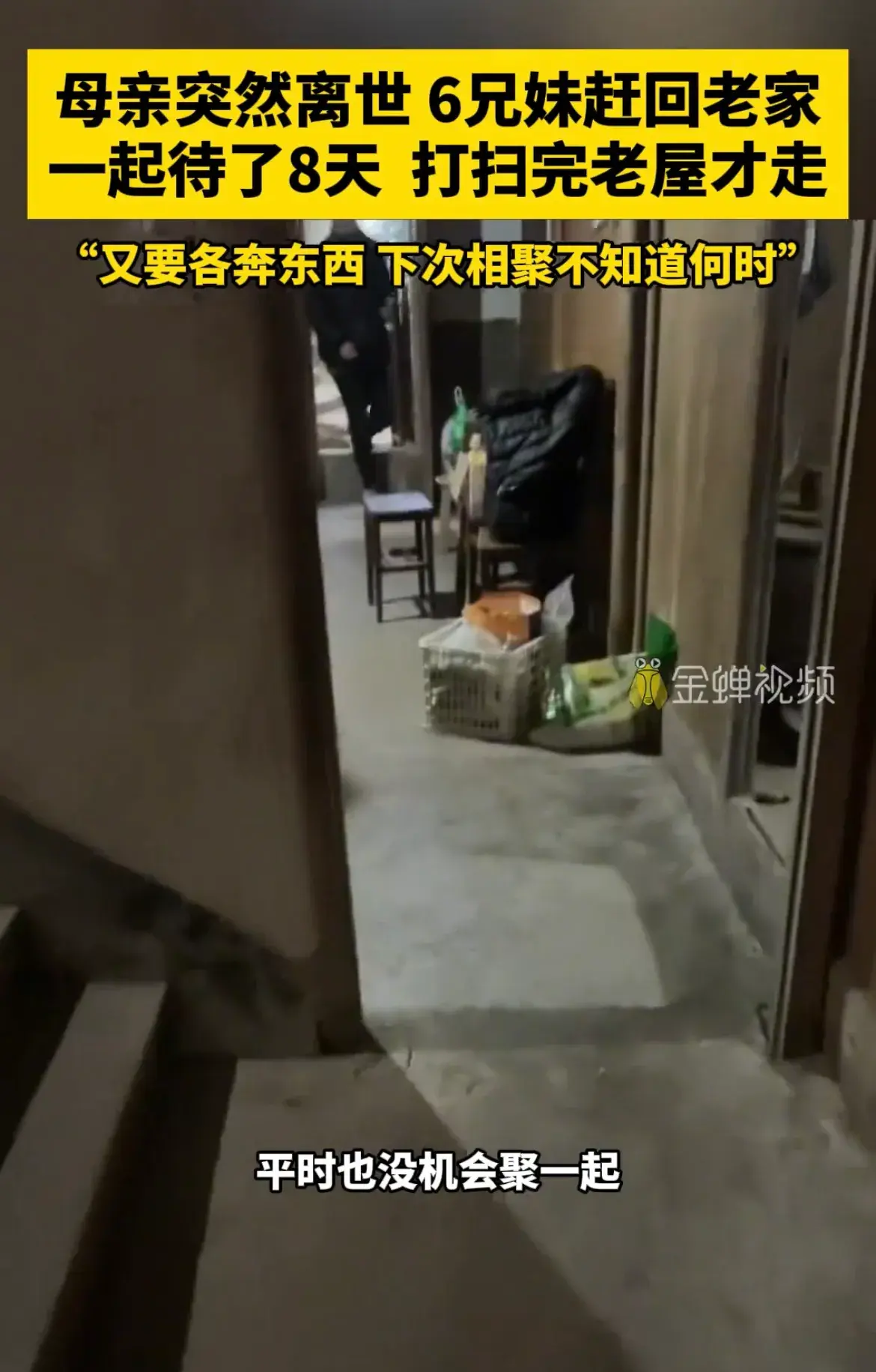 12月20日,龍泉,一女子分享母親離世,兄弟姐妹六人回家八天,打掃完老屋,大家各奔東西。網友說,沒了娘,以後就是真的親戚了。