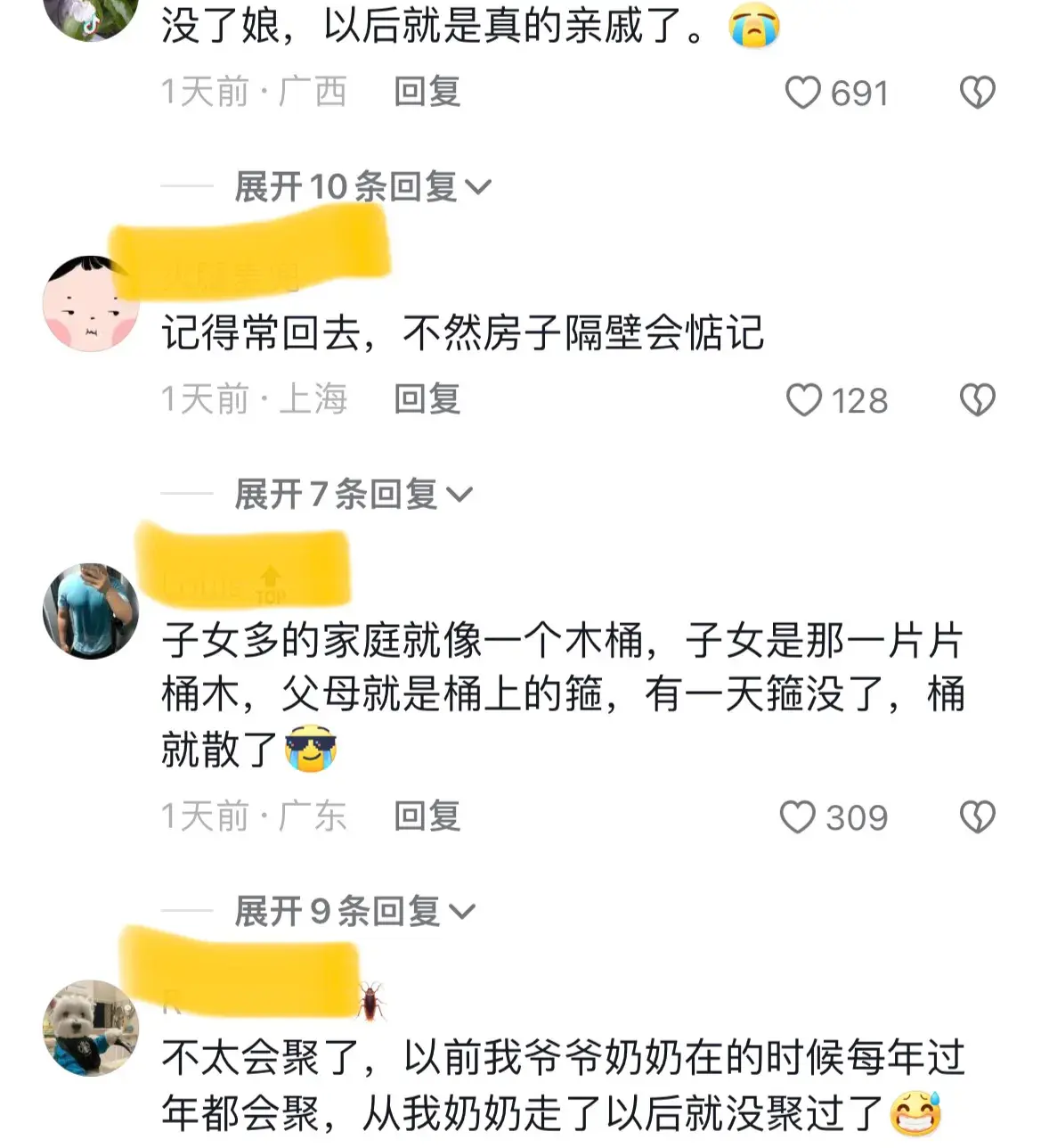 還有網友說,父母在,家就在,父母亡,家則散。希望大家有時間聚聚,也珍惜一下兄弟姐妹這輩子之情誼,來世面對面也未必再認識。