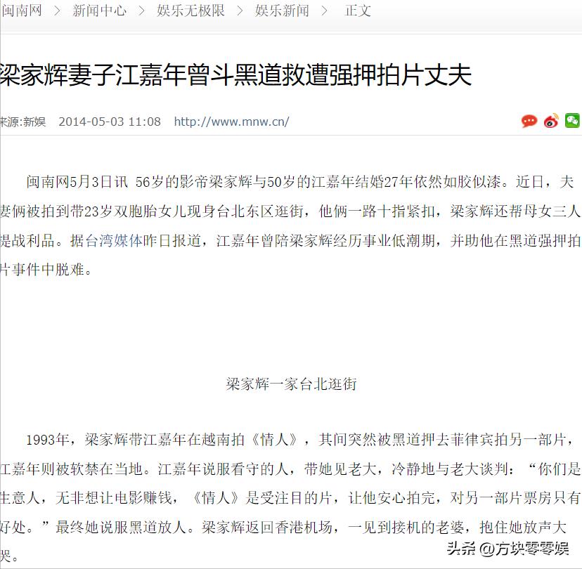 閩南網——梁家輝妻子江嘉年曾斗黑道救遭強押拍片丈夫