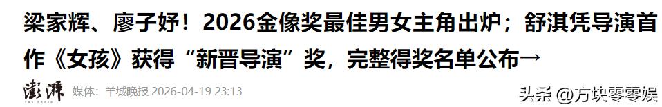 梁家輝、廖子妤!2026金像獎最佳男女主角出爐;舒淇憑導演首作《女孩》獲得「新晉導演」獎,完整得獎名單公布→