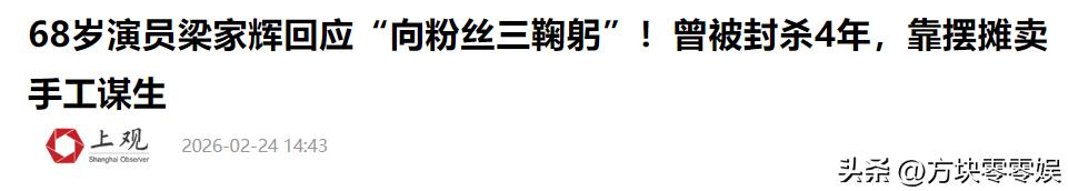 上觀新聞——68歲演員梁家輝回應「向粉絲三鞠躬」!曾被封殺4年,靠擺攤賣手工謀生