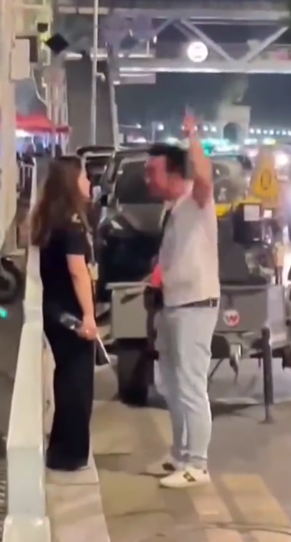 當時這對夫妻站在某處街頭,只見身穿白衣的男子情緒十分激動,大聲朝著妻子哭吼「你什麼都不管,你不管孩子,不管我,你一天到晚都是談戀愛,你為什麼要嫁給我?」而男子更是哭到面部通紅,同時大力剁腳。