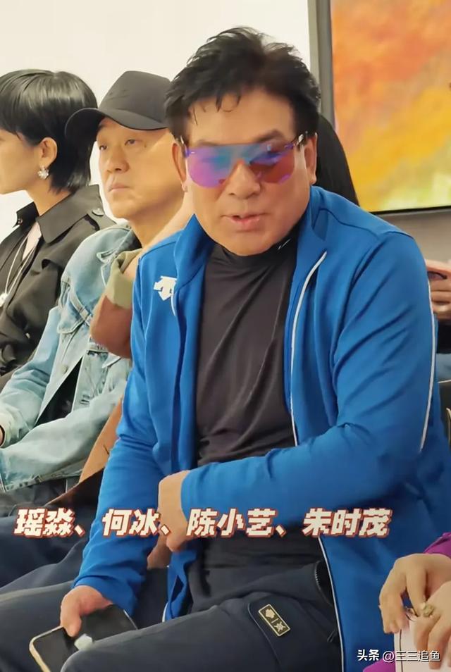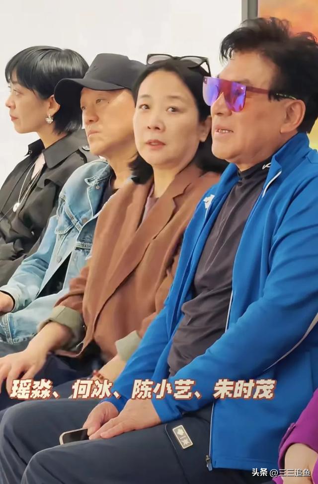 陳小藝、何冰還有朱時茂坐一起,朱時茂也相當時尚,穿著藍色運動外套、戴著墨鏡,看起來非常潮,相比之下陳小藝就低調許多,渾身鬆弛感,感覺像是被直接拉過來,非常自然普通。