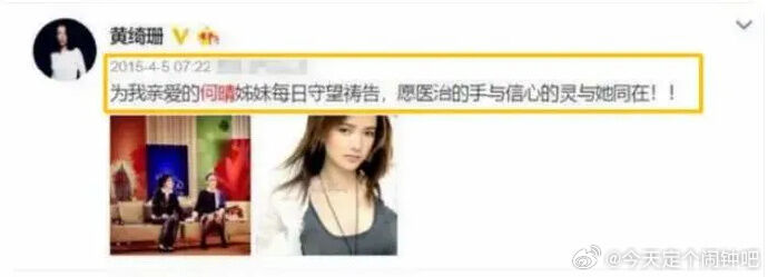 根據大陸網友追查,何晴最後一回公開現身是在2014年央視《回聲嘹亮》節目中《水滸傳》劇組重聚的特別企劃,當時她身著古裝,用溫柔婉約的嗓音獻唱〈又見炊煙〉,成為她留給觀眾的最後身影。