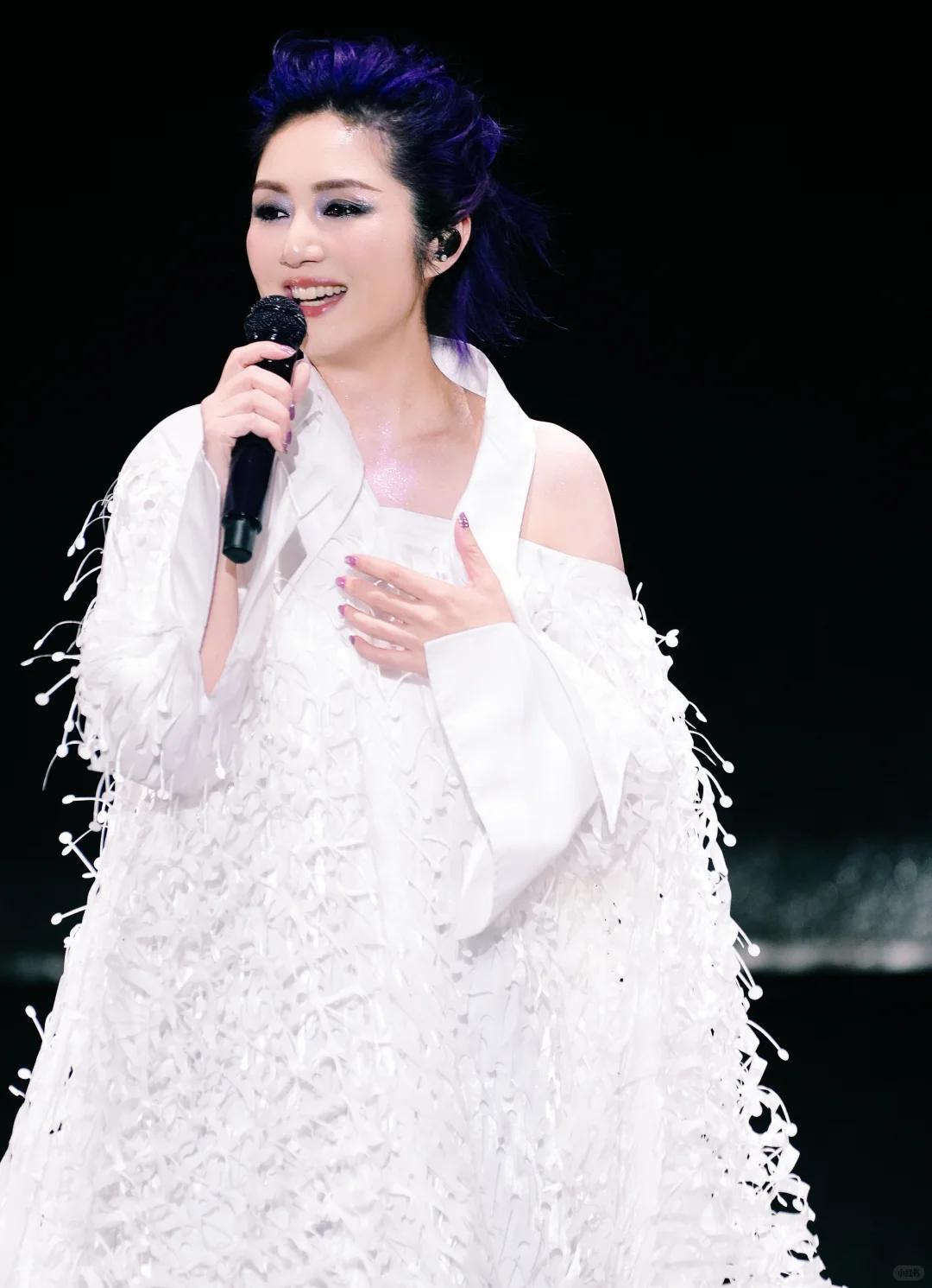 楊千嬅今天這身的搭配都是非常奇怪的,這樣的服裝就是完全靠著楊千嬅的這張臉在苦苦支撐。