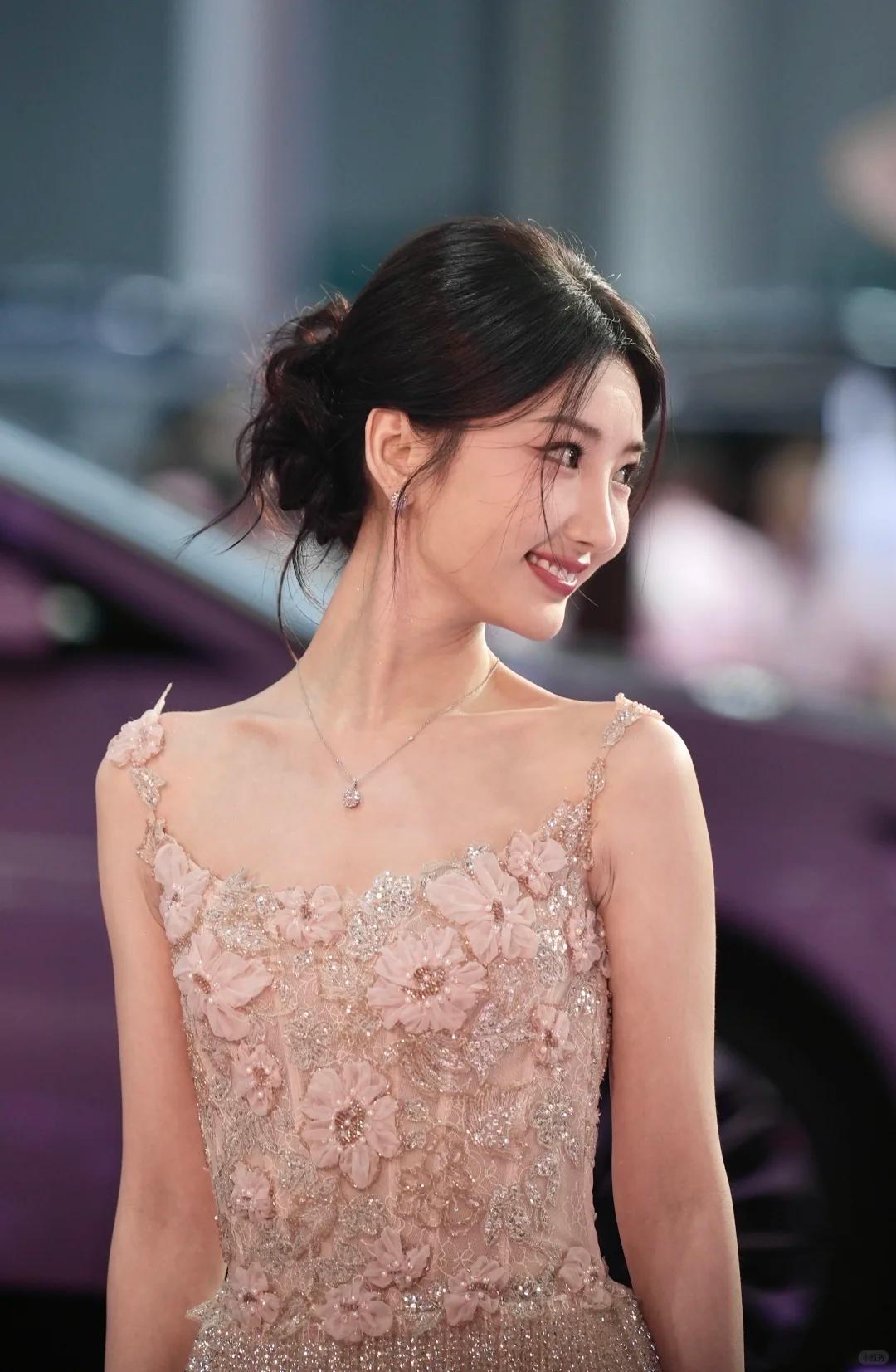 她穿著一個粉色禮服登場,整個人看著都是非常溫柔的,並且她的笑容也充滿了感染力,整個人就像是一個下凡的仙女。