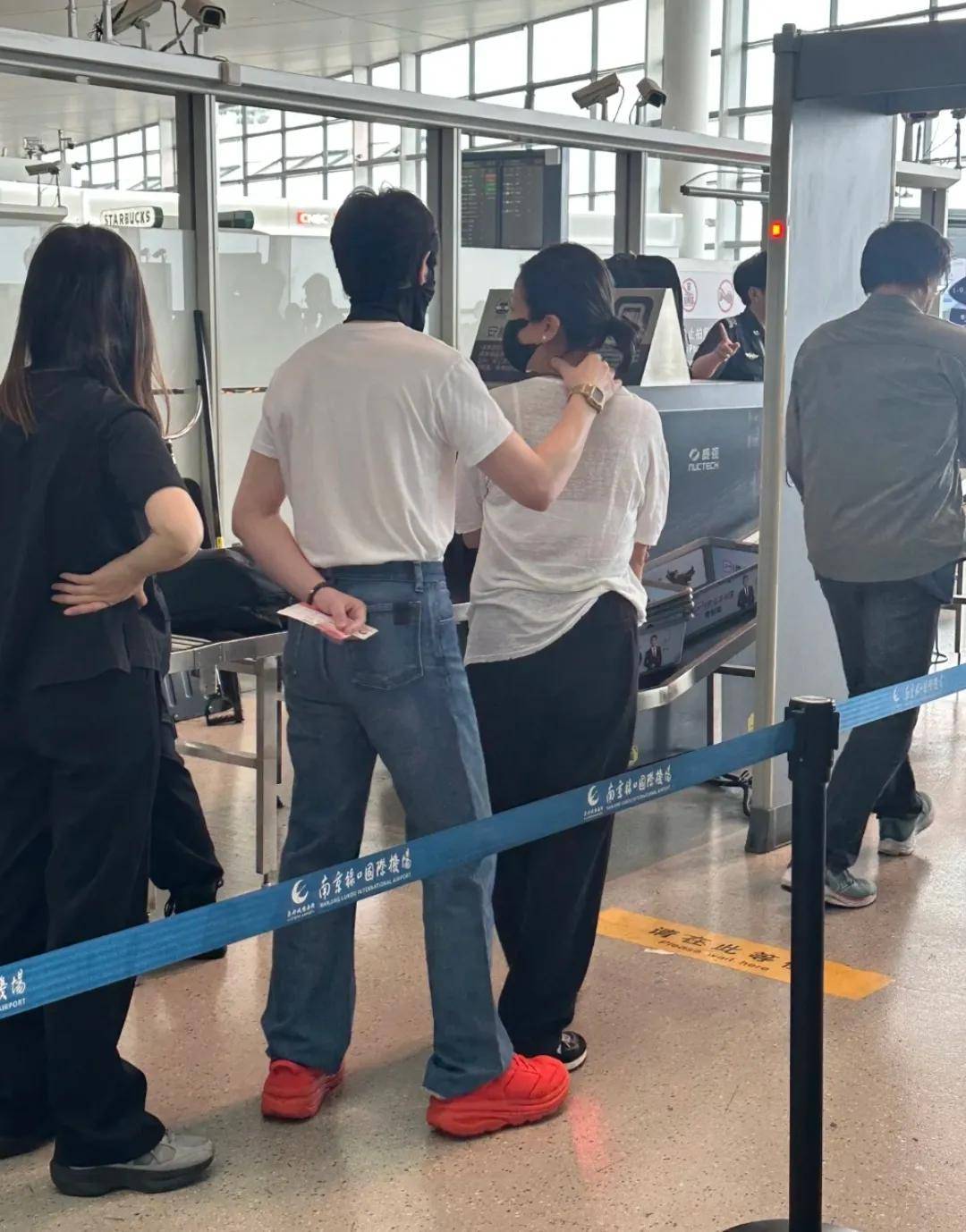 蕭敬騰與老婆林有慧打網球前一日,夫妻倆還在江蘇,在機場被偶遇時,林有慧也是穿著打球時的這件衣服,太薄太透,著實有些尷尬。