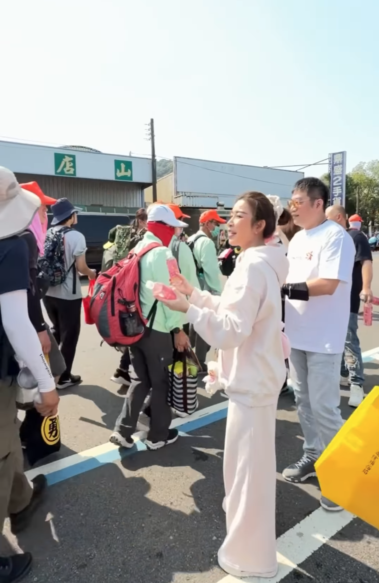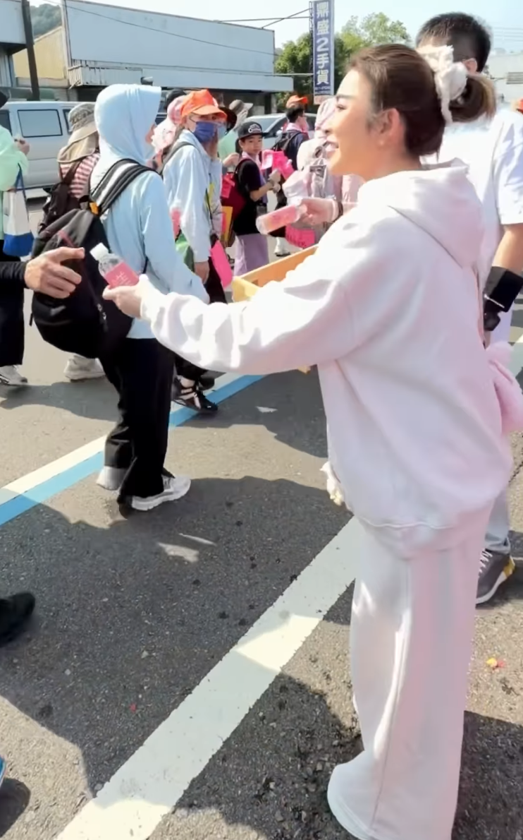 不過她因為沒有全副武裝上陣,在烈日頂天的長時間發水工作下,額頭與手部都因為日曬而發紅,但仍親切露出微笑不喊累,現場民眾也非常感動,出面證實,「正中午看到妳沒任何遮陽防曬裝備,一直帶著親切笑容服務各位香燈腳,那時候覺得女神好親民」。