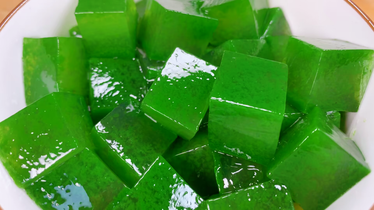 取適量白涼粉放入碗中,加水攪拌均勻,然後把炒鍋徹底刷乾淨,不能有一點點油,否則影響涼粉後面的製作,將艾草汁倒入炒鍋中大火燒開,用鏟子輕輕攪拌,艾草汁燒開后煮制三分鐘,把調好的白涼粉向鍋中慢慢倒入,倒的過程中要用鏟子不斷攪拌,白涼粉倒完後轉成中火慢慢熬煮,直到把艾草汁熬成粘稠狀關火。