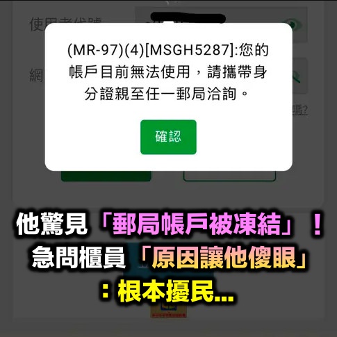匯款進不來!他檢查驚見「郵局帳戶被凍結」 急問櫃員「原因讓他傻眼」:根本擾民...