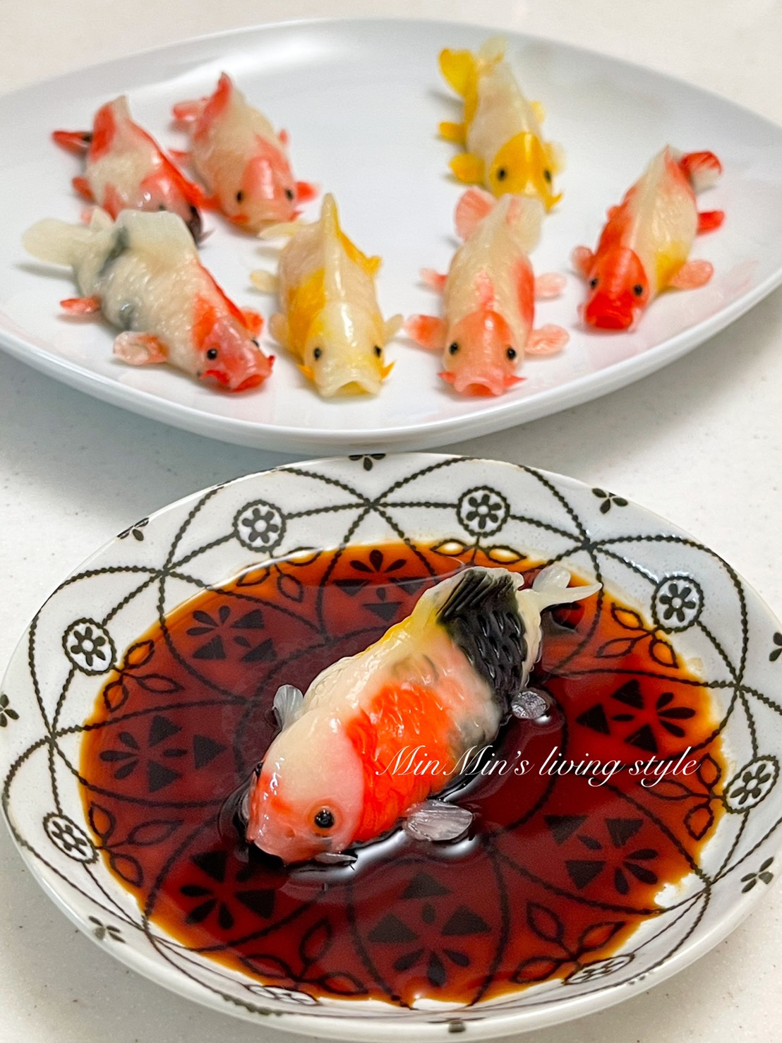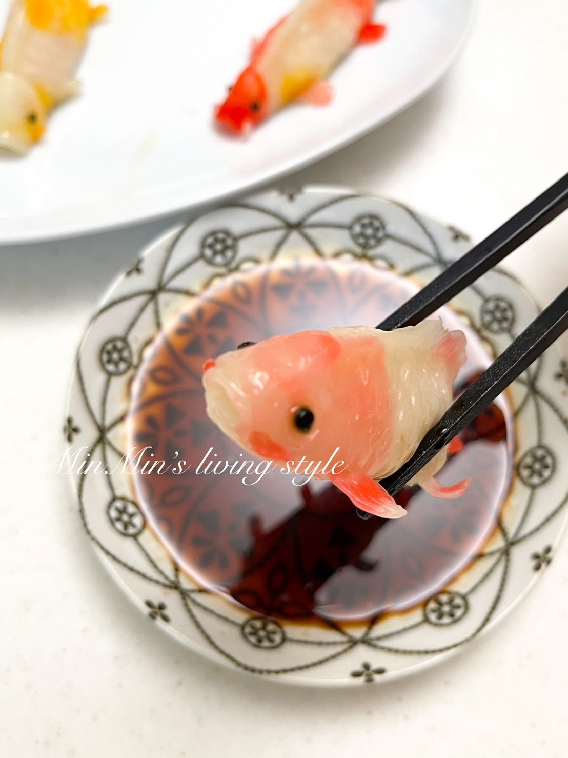 除了小金魚之外,她後來也做出了升級版的錦鯉餃子,不僅體型變大、色彩更豐富,內餡也多加了切碎的花枝,超可愛的造型餃子放上餐桌真的會瞬間吸引所有人的目光呀~~