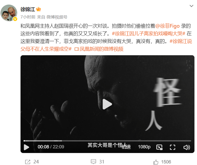 4月22日晚,今年63歲男星徐錦江在他的社交平台上發布了一條長達22分鐘的影片。
