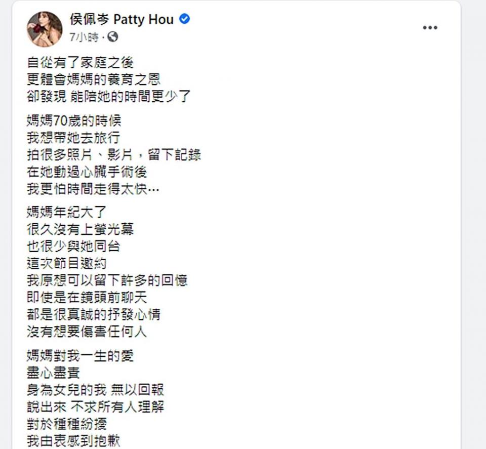 侯佩岑的媽媽在節目中懺悔,蔡貴照女兒發聲:無法原諒她們母女!事情還有後續,估計侯佩岑和媽媽想要忘記過去,想要放下所有。但蔡貴照的兒女們似乎不會答應的。