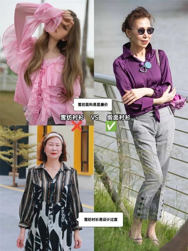 中年女人想要擺脫大媽感,第一件事情就是丟掉廉價的衣服,打開衣櫥,你會發現櫃子裡、肯定會有一件雪紡襯衫,透膚感強的雪紡面料,很容易顯得廉價俗氣,再加上設計過渡,自然和成熟女人的氣質相悖。