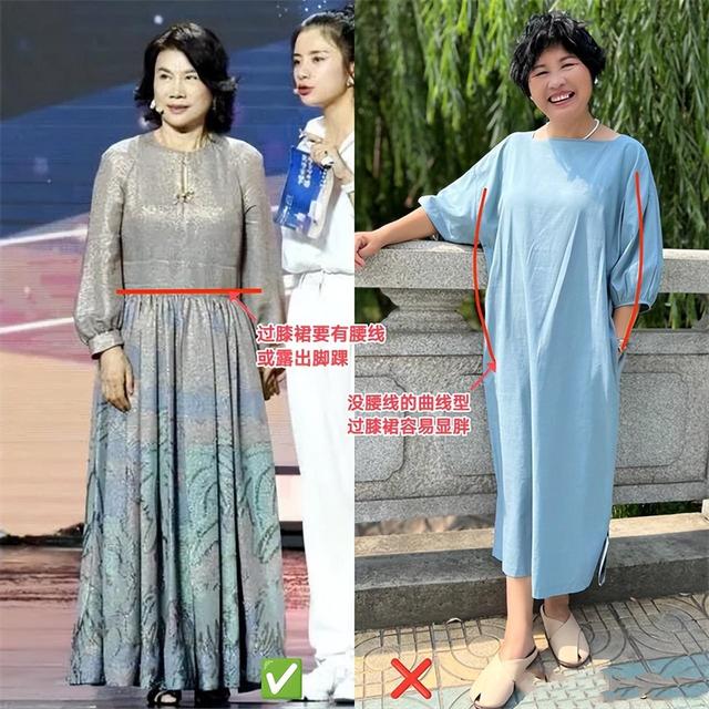 裙子是中年女人的最愛,同時也是優雅的代名詞,可是你知道嗎?無腰線的裙子,穿在身上顯胖又臃腫,看似藏肉束縛,實則毫無美感,腰線收緊的過膝裙,露出腳踝位置,顯瘦又顯高。