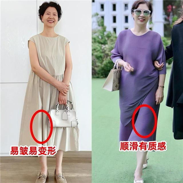 步入中年階段以後,很多女性都會面臨著身材發福走樣,所以在挑選衣服時,就需要擦亮雙眼。這種很容易褶皺的奶奶褲,穿在身上就特別沒質感,建議大家換成面料平整光滑的長褲,更有檔次。