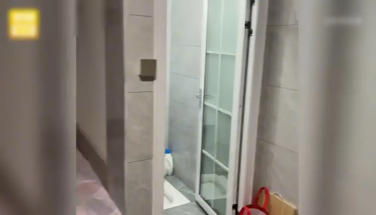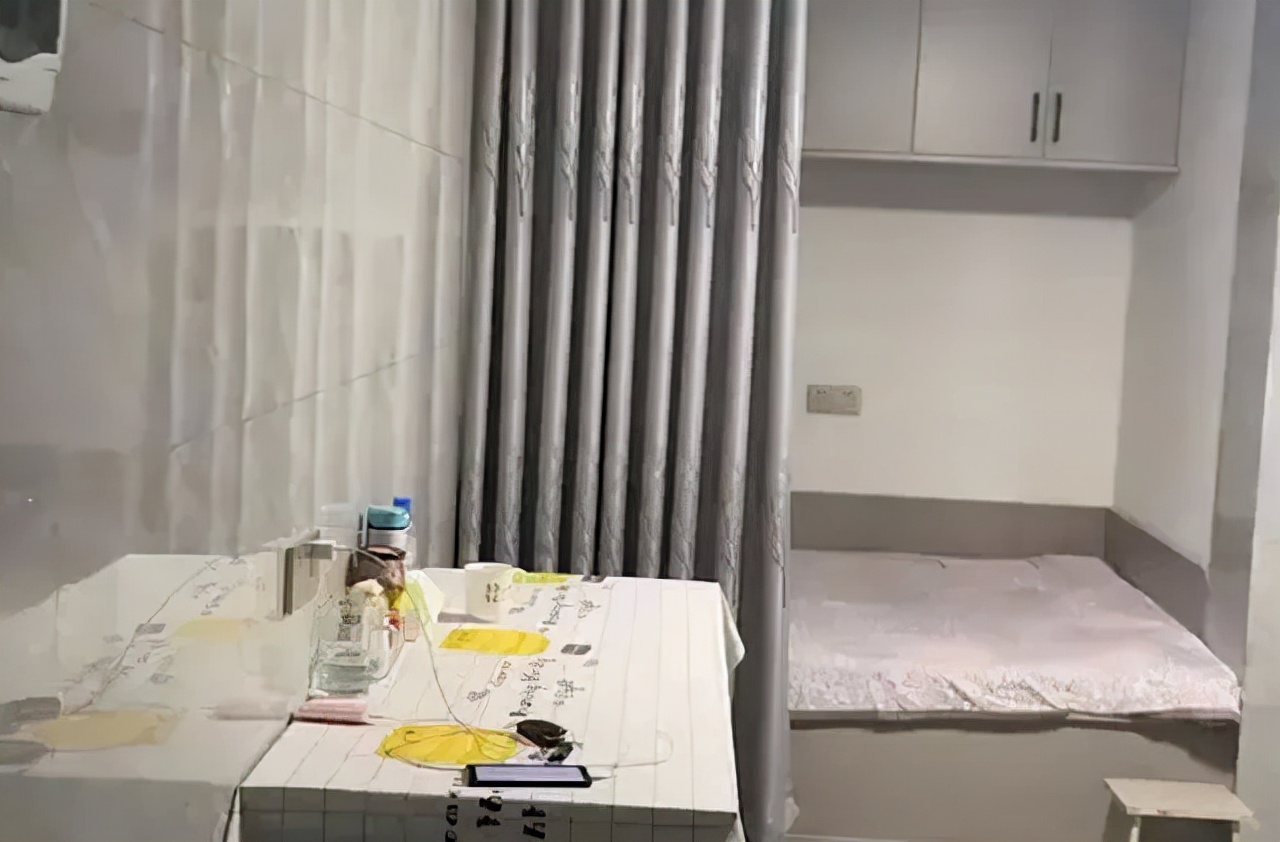 從影片上看到,房間內有一張桌子,上面鋪好桌布,還放了一排杯子。桌子的旁邊就是一張床,上面還貼心地做了落地的簾子,在床的上面還有一排小櫃子用來儲存。
