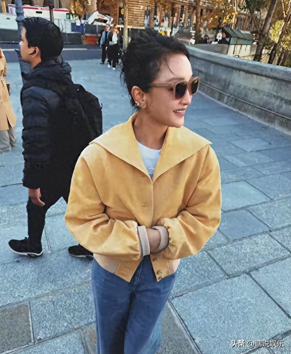 巴黎街頭的晨光裡,51歲的周迅身著米黃色CHANEL夾克與牛仔褲漫步。