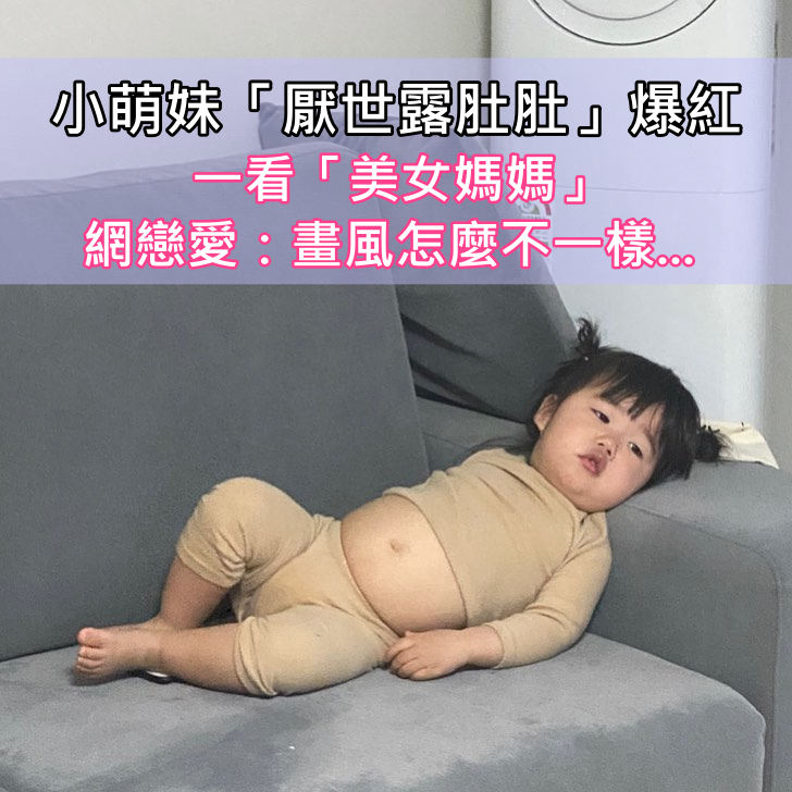 內心藏著大叔魂!厭世小萌妹「露肚肚躺沙發」萌Q好想戳 鏡頭轉到「超仙美女媽媽」畫風差很大