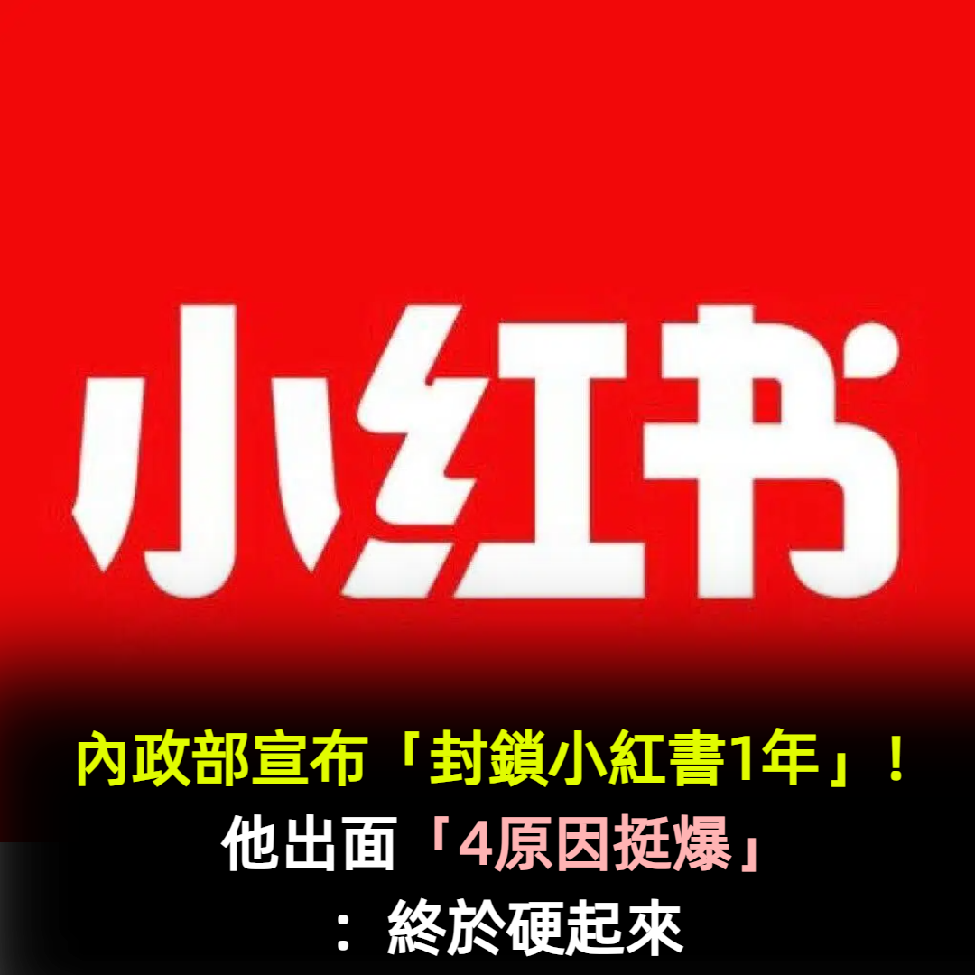 內政部宣布「封鎖小紅書1年」發出聲明!他「4原因挺爆」:終於硬起來