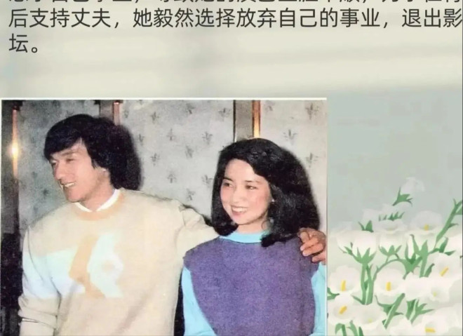 從此,她成了「地下妻子」。沒採訪,不出席活動,名字不再掛在任何片尾。成龍事業一路上升,她像被整個公眾面板擦掉。