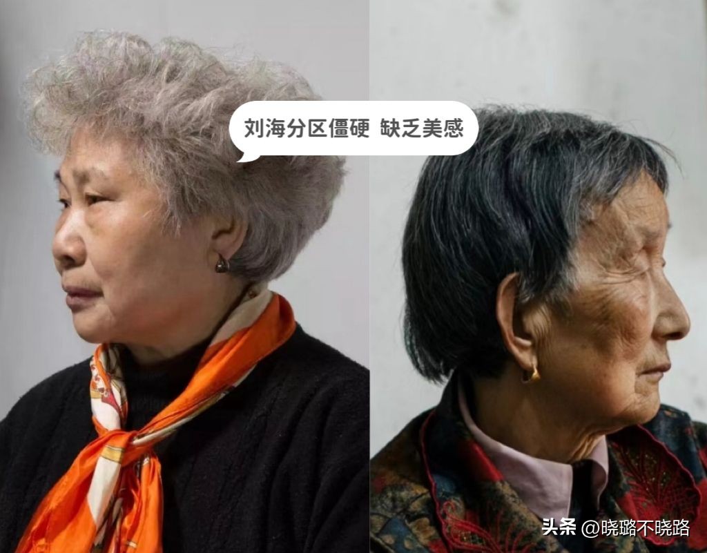 大媽髮型還有一個「致命傷」,那就是分區特別僵硬,頭髮之間的銜接性十分生硬,中分線過分筆直,對於圓臉、高顴骨和寬額頭來說,極其不友好。