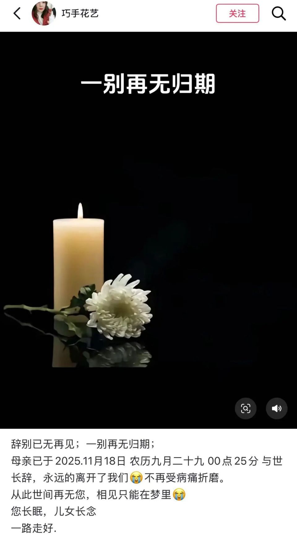 近日,湖北一部落客「巧手花藝」罹癌過世,其女兒以母親帳號發布一則動態,悼念母親於18日凌晨過世,年僅44歲。
