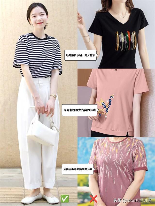 當然,也有不少女人在上了年紀後偏愛有設計感的T恤。追求個性沒錯,但別追求不適合自己的個性化設計。