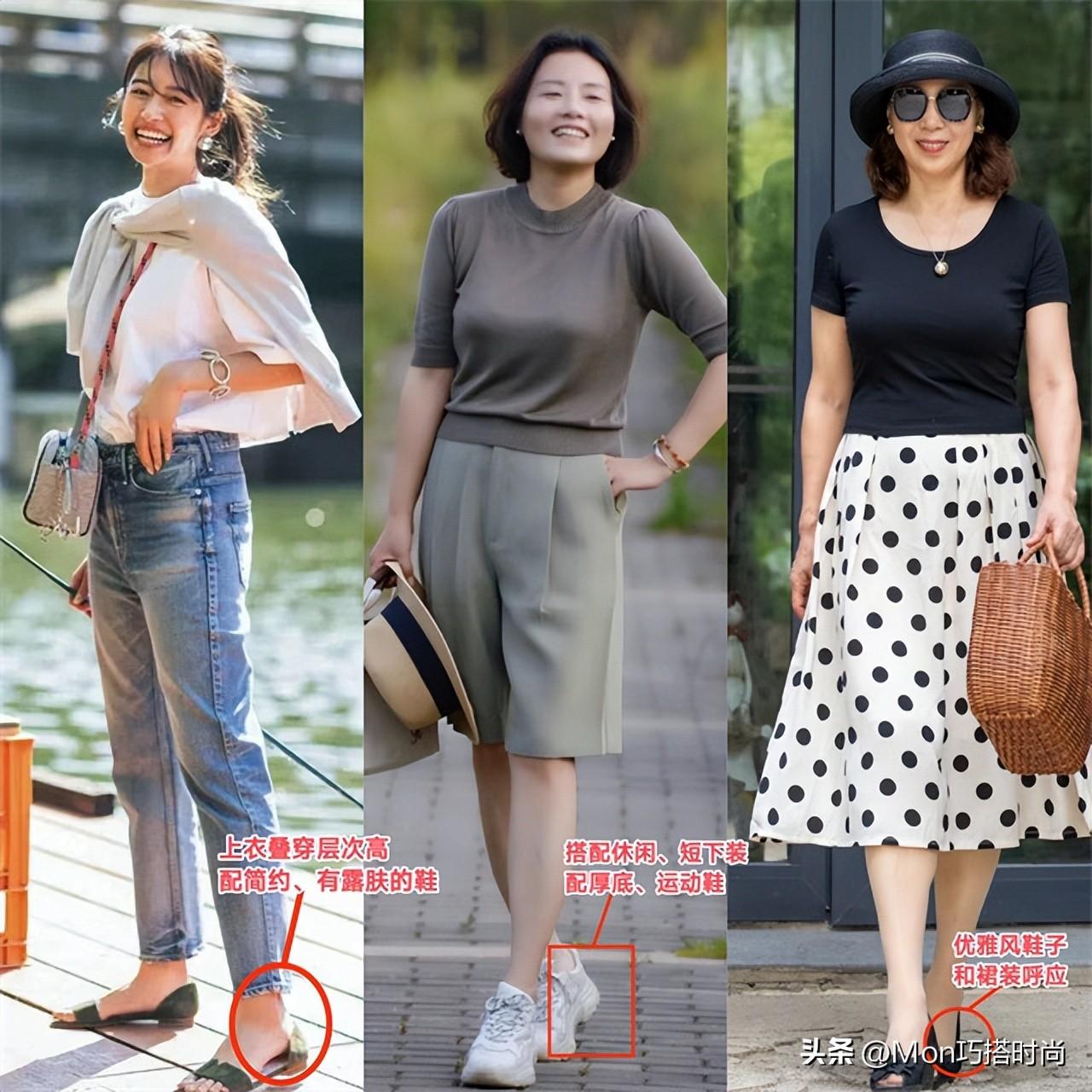 還可以在鞋子上為T恤附上一層優雅的濾鏡。重點是要選擇與整體搭配協調、和服飾有局部呼應的鞋款。