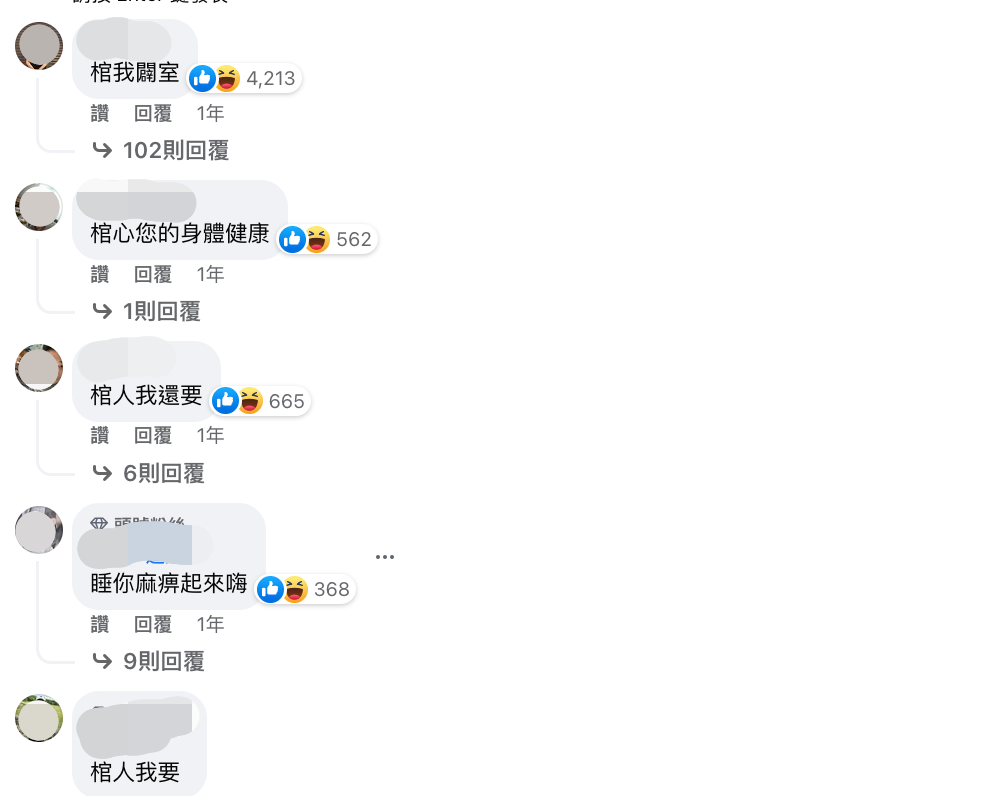 大家一起動動腦!他上網問「開棺材店怎麼取名」網蓋樓出招 超強網友「4字店名被讚爆」狂吸上千讚 雞排一塊 2022-11-02 檢舉 分享到 Facebook 結果「棺我闢室」、「棺人我還要」、「蓋逝奇材」等店名獲得最多網友支持,其中「棺我闢室」竟然獲得4千多人支持,大家紛紛留言按讚響應,看了真的會一秒噴笑~(來源:爆廢公社公開版)不知道原PO最後會選用哪個店名,但不管是哪一個都真的超逗趣的啦~來源:爆廢公社公開版 Advertisements 回首頁 2/2 Advertisements 編輯精選推薦 More + 女人性格好不好「看她衣服顏色就知道」 :真的很準! 霍諾德登頂101!賈永婕傻眼「抱怨他1件事」 曝私下對話:「不是有答應我嗎?」 陳漢典、Lulu大婚!吳宗憲證實「紅包200萬將入帳」 奢華婚禮「禮金總數超嚇人」 今年過年不一樣「會出現這6種情況」!專家說出實情了 當年比影帝尫還紅!粉絲偶遇「61歲昔日女神」 為愛淡出「被寵愛23年」身旁老公一舉動:嫁對人了❤️ 扮灰姑娘去迪士尼!路上巧遇「壞姊姊和後母」被要求下跪 下秒「神入戲默默伸腳」遊客圍觀笑歪 壽司店狂嗑1小時!2位大媽「結帳竟然是0元」黑暗手法曝光 店員傻眼:「直接走出去就好」 隱藏版台灣之光!天天用「一方便神物」竟是台灣人發明 網恍然大悟「難怪國外很少見」 54歲像34歲!昔日第一美人「山上慢跑被拍」 一轉身「蜜桃臀辣翻」:內外兼具的女神❤️ 70歲影壇美魔女「合影粉絲像芭比娃娃」! 由內而外凍齡「還是周潤發跑友」比基尼照更辣❤️ 富二代突身亡!小三攜子「想要認祖歸宗」大體不張嘴 高大成「曝靈異狀況」嚇到:不是頭一次 40萬塊全搞定!二手老屋「一下雨就漏水」根本無法住 暴風改造「北歐風質感豪宅」浴室根本網美點 吃火鍋賞江景!露天火鍋店「36宮格麻辣鍋」繽紛又壯觀 還有「牽絲麻糬甜點」和竹筒冰淇淋奶茶❤️ 夫妻倆出席活動!60歲劉嘉玲「狂找圈內名人聊天」超健談 63歲梁朝偉「默默一連串動作」網笑翻 結婚7年!人妻吃飯追劇到一半「丈夫突提離婚」 氣喊「妳整天不穿內衣」再也受不了... 85歲失智父身亡!林葉亭突宣布「皈依佛門」 遇大師「開示一番話」忍不住淚崩 男友視訊「目睹最後一面」!狂飆10分鐘衝現場「大哭已經來不及」 格林童話小鎮❤️濱海城鎮裡「繽紛繪本小木屋」林立街道旁 為維護童話氛圍「霸氣禁止連鎖店進駐」 她找師傅紋眉「對方竟還是學徒」!她一看當場崩潰:「還只願意賠....」 昔是台北縣地標!1商圈沒落「淪為鬼城」 在地人感嘆:曾經熱鬧非凡
