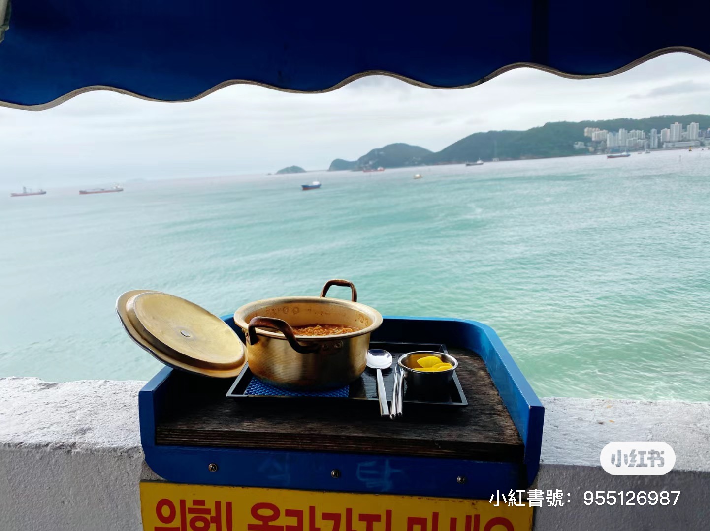 位在釜山的白淺灘文化村裡面,這裡有間「흰여울점빵」靠海小店,雖然小小一間但氛圍感很足,很多人都看到IG上的美照而來,畢竟可以邊看釜山大海,一邊吃泡麵,也是一種很浪漫的感受啊~
