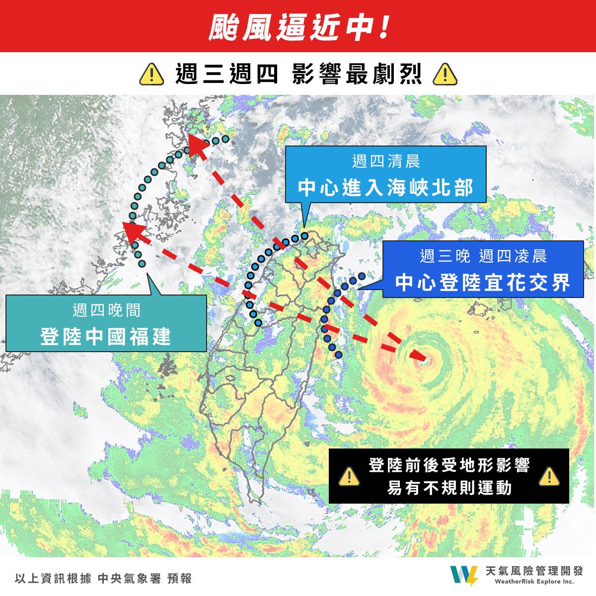 根據ETtoday報導,凱米強颱預計今(24日)深夜到明晨登陸,宜蘭到北花蓮都可能是登陸範圍,要留意今晚是否出現滯留或打轉不規則運動,可能會拉長風雨時程,今越晚雨越大,北部、宜蘭、北花蓮、桃竹苗首當其衝,中南部入夜風雨轉強,豪大雨持續一整天。而最新風雨預測全台22縣市明日都達停班停課標準,但仍要以各地方政府宣布為主