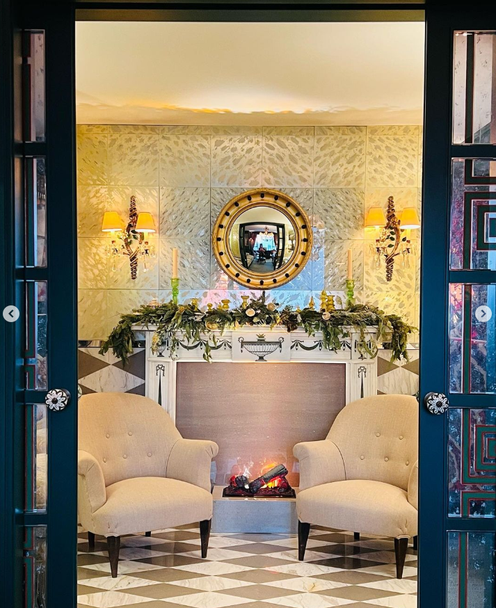 另一張則是她自在地席地而坐,身後是氣派的假壁爐與華麗的聖誕裝飾,搭配上白蠟燭,滿滿都是耶誕氛圍感,而除了奢華家具外,還擺放不少劉嘉玲美照!