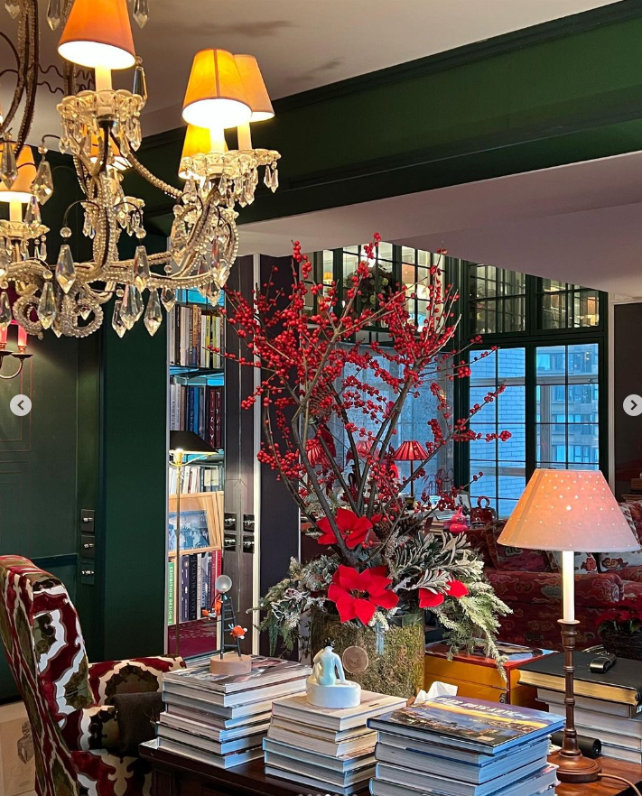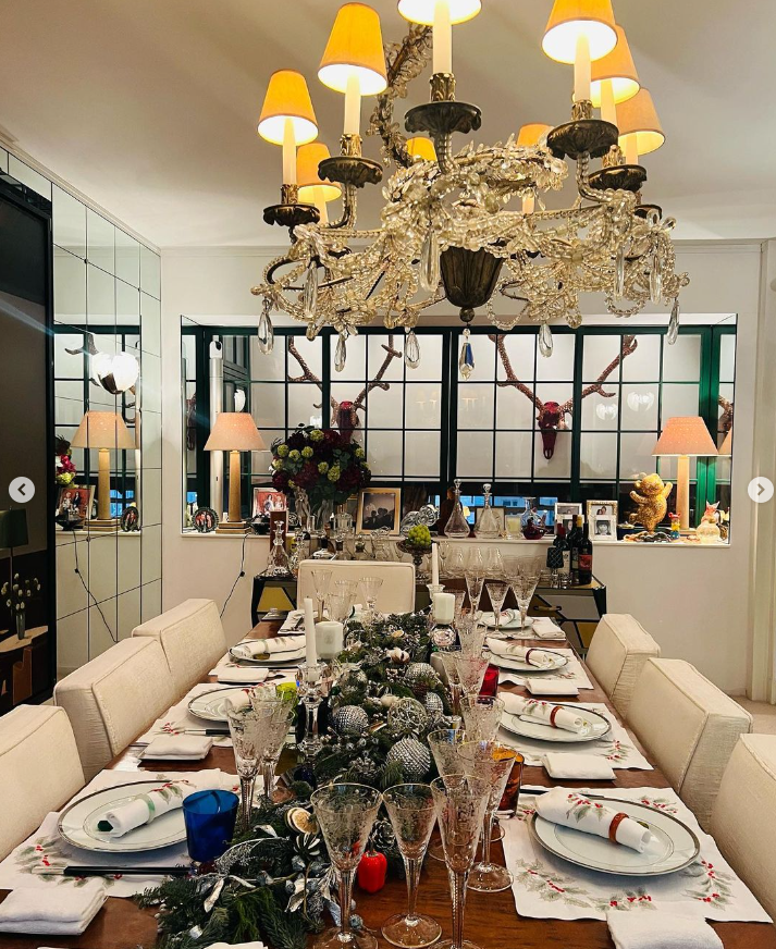 劉嘉玲這次也大方地分享餐廳、書房的布置,可以看到餐廳裡是一張至少可以容納10人的大長桌,中間布置上節日氛圍的裝飾,一抬頭就是一盞水晶吊燈,好氣派!還可以見到屋內擺設不少收藏品,藝術氣息濃厚!而照片一發出,粉絲們也紛紛驚呼:「靚到爆」、「嘉玲姐家佈置的好華麗喔」、「好温馨高貴的家,想去做客」。