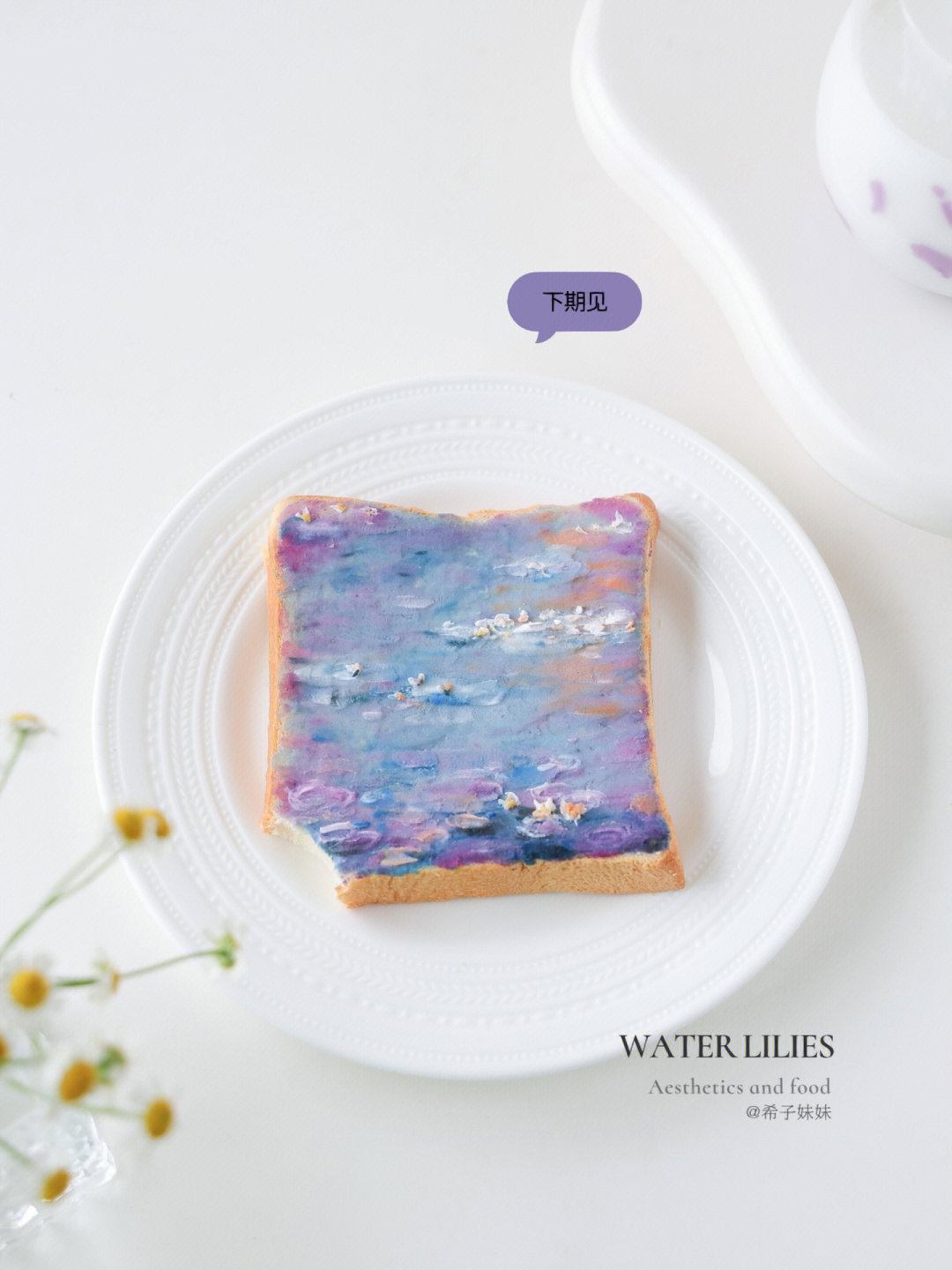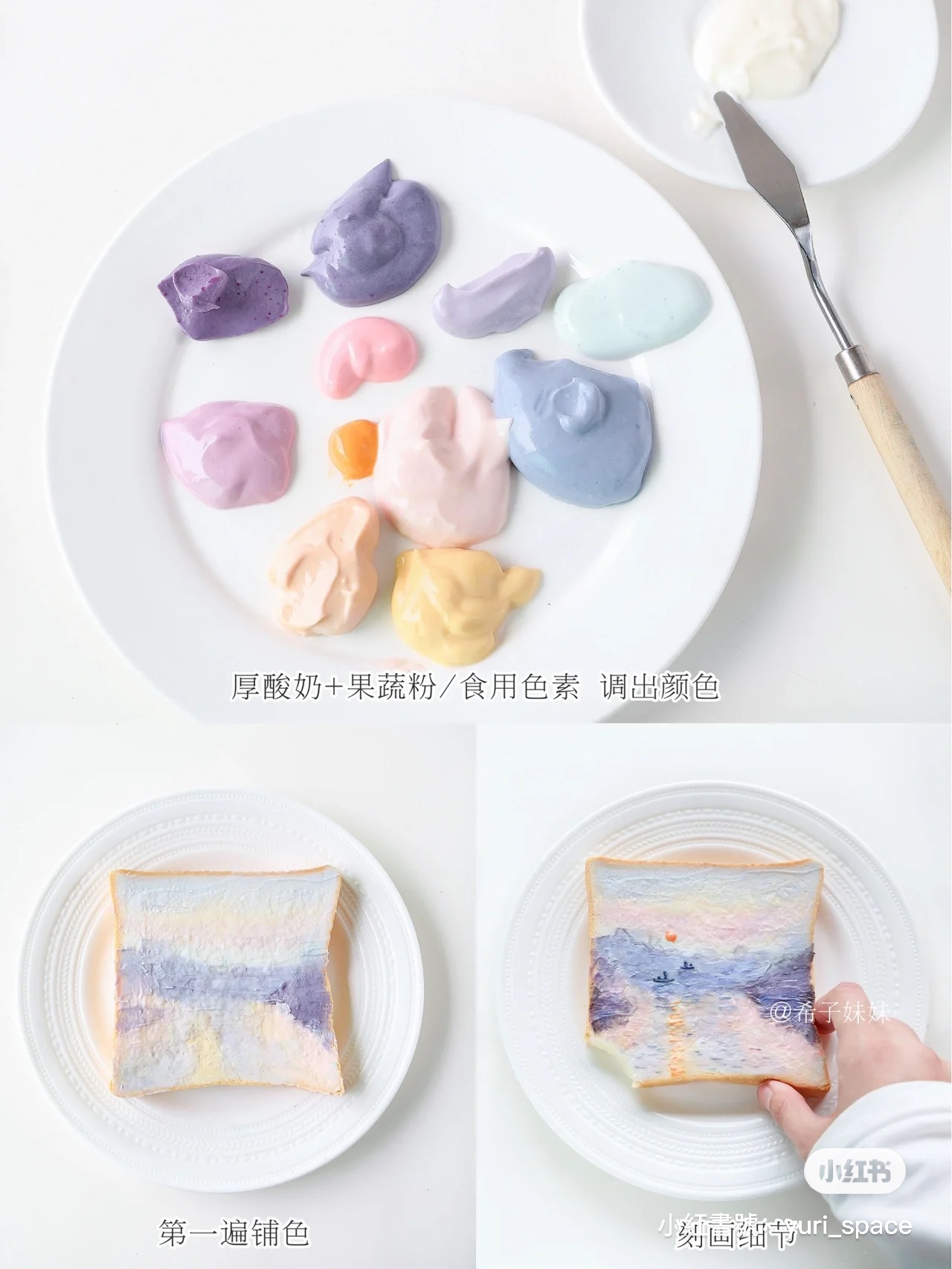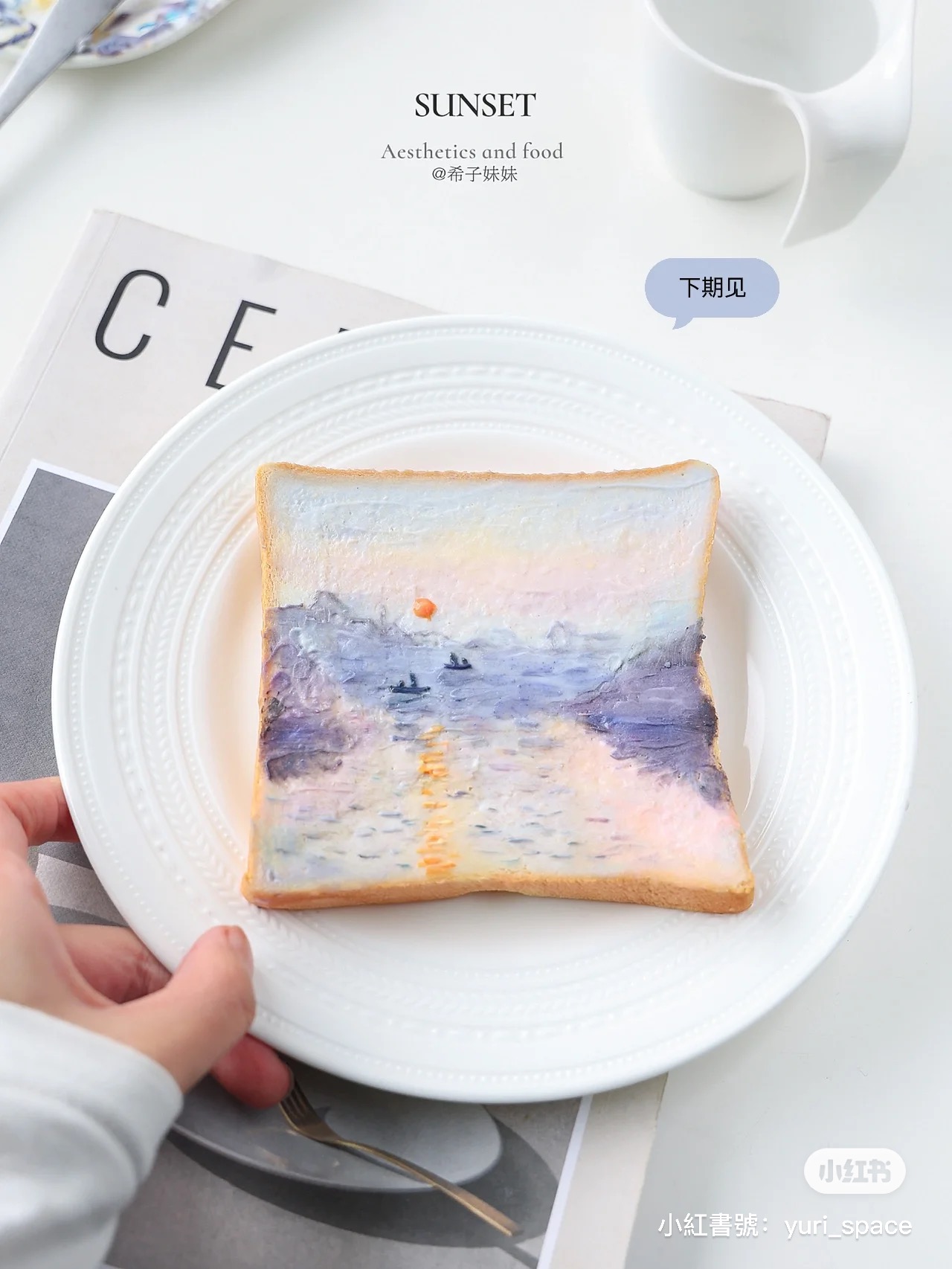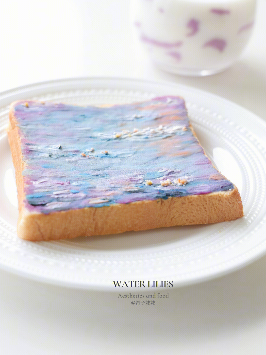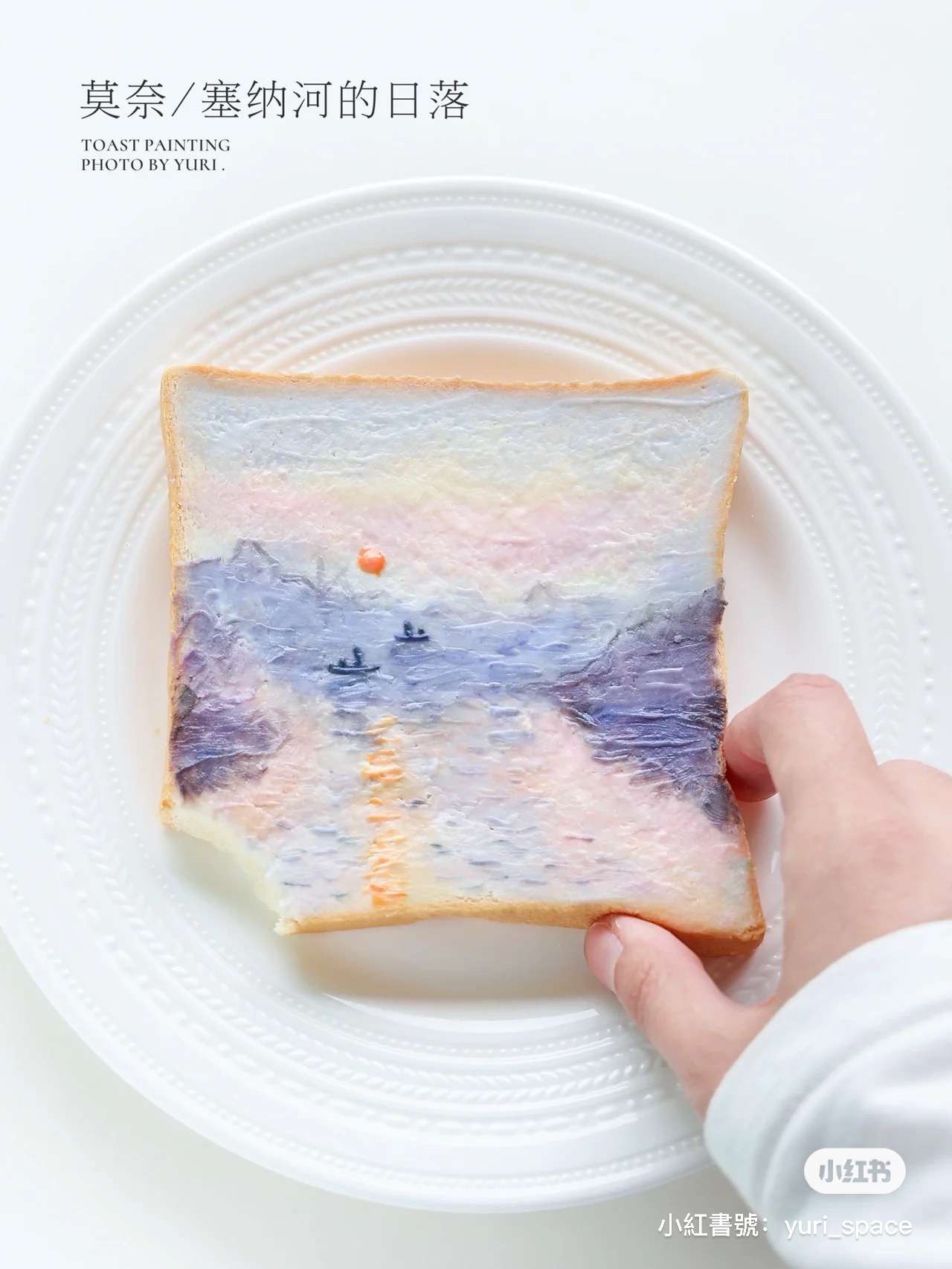 一開始是從韓國流行起油畫吐司,他們把吐司當成畫布、各式口味的抹醬當作顏料,把抹醬整齊交錯抹在吐司上,創作出一個個色彩像油畫一樣柔和、吃起來也超好吃的可愛吐司!而小紅書帳號@希子妹妹 擅長做藝術感十足的造型食物,她把一幅幅經典名畫全畫進了吐司裡,每片都美到捨不得吃~