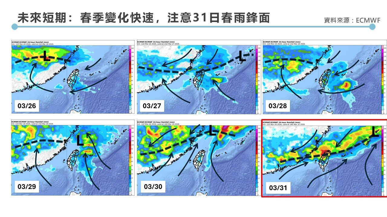 網友們紛紛留言提醒:「連假前半段記得帶雨具出門」、「看來露營計畫要延後了」、「清明掃墓要挑好時間,別被雨淋濕」、「這波鋒面感覺挺強的,山區活動要特別小心」、「還好後半段會放晴,至少有機會出去走走」。