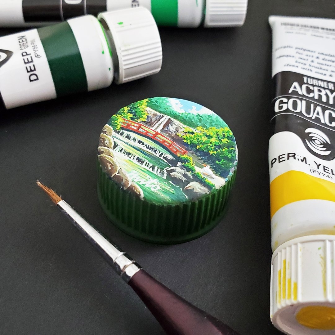 垃圾變絕美收藏品❤️她把「小小瓶蓋當畫布」繪出風景畫 一出手「黑色蓋子→星空下神社」絕美無比