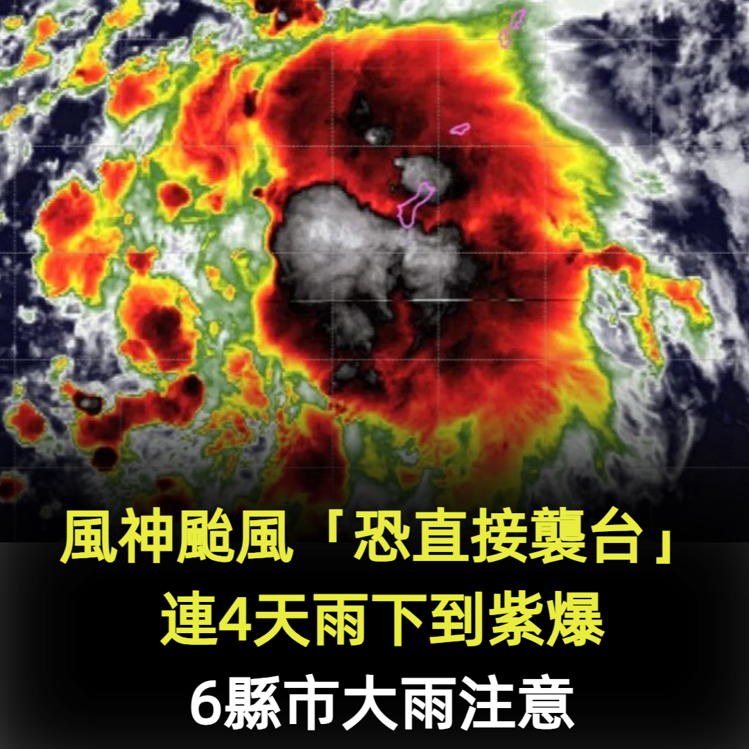 風神颱風「恐直接襲台」!6縣市注意「連4天雨下到紫爆」