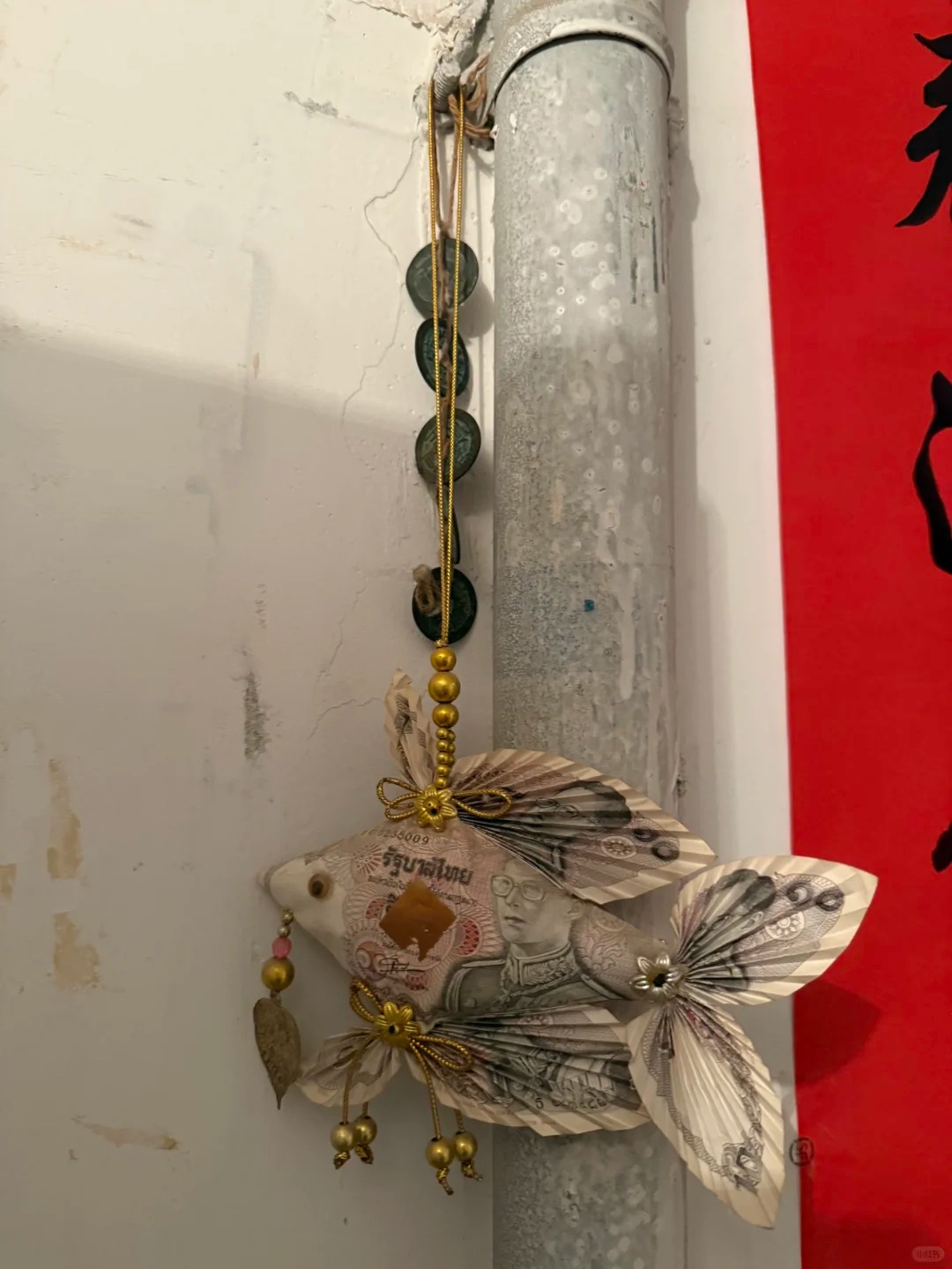 相信應該有不少人,都會在自家門口放些吊飾或娃娃當成裝飾!然而日前卻有一位網友發現,鄰居家的門外掛著一個用錢幣做成的魚,且魚頭還是朝向他的家中,讓他不禁感到有些發毛,好奇其真正用途..