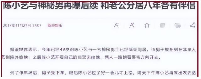 據爆料,自2009年緋聞事件之後,她已和老公分開了八年。2017年,已和一位神秘男子低調同居,對方還親自來到北京人藝劇院外等候陳小藝。
