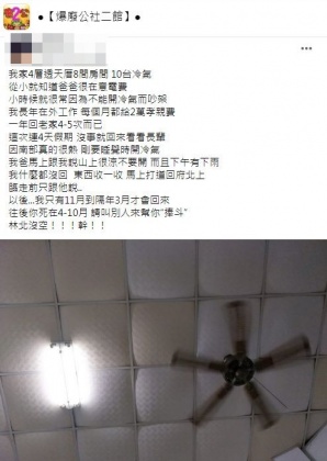 根據聯合新聞網報導,最近有網友在臉書「爆廢公社二館」表示,自己的老家是四層透天厝。雖然共有8間房間裝了10台冷氣,但因為知道爸爸一直以來都很在意電費,小時候就常常因為不能開冷氣而搞得彼此不愉快,如今長大後常年在外工作,雖然一年大概僅回家四五次,但每個月都會給家裡兩萬塊的孝親費。