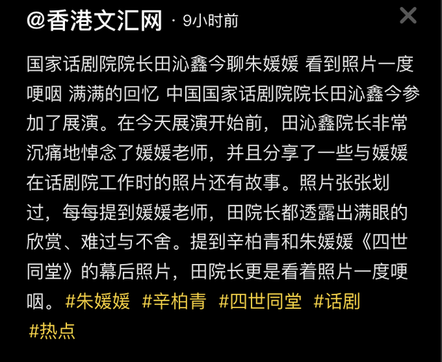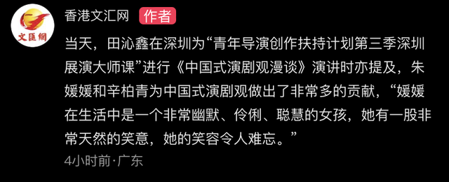 除了劉海鷹主任,話劇院的院長田沁鑫女士,也在採訪中表示了對朱媛媛的悼念。