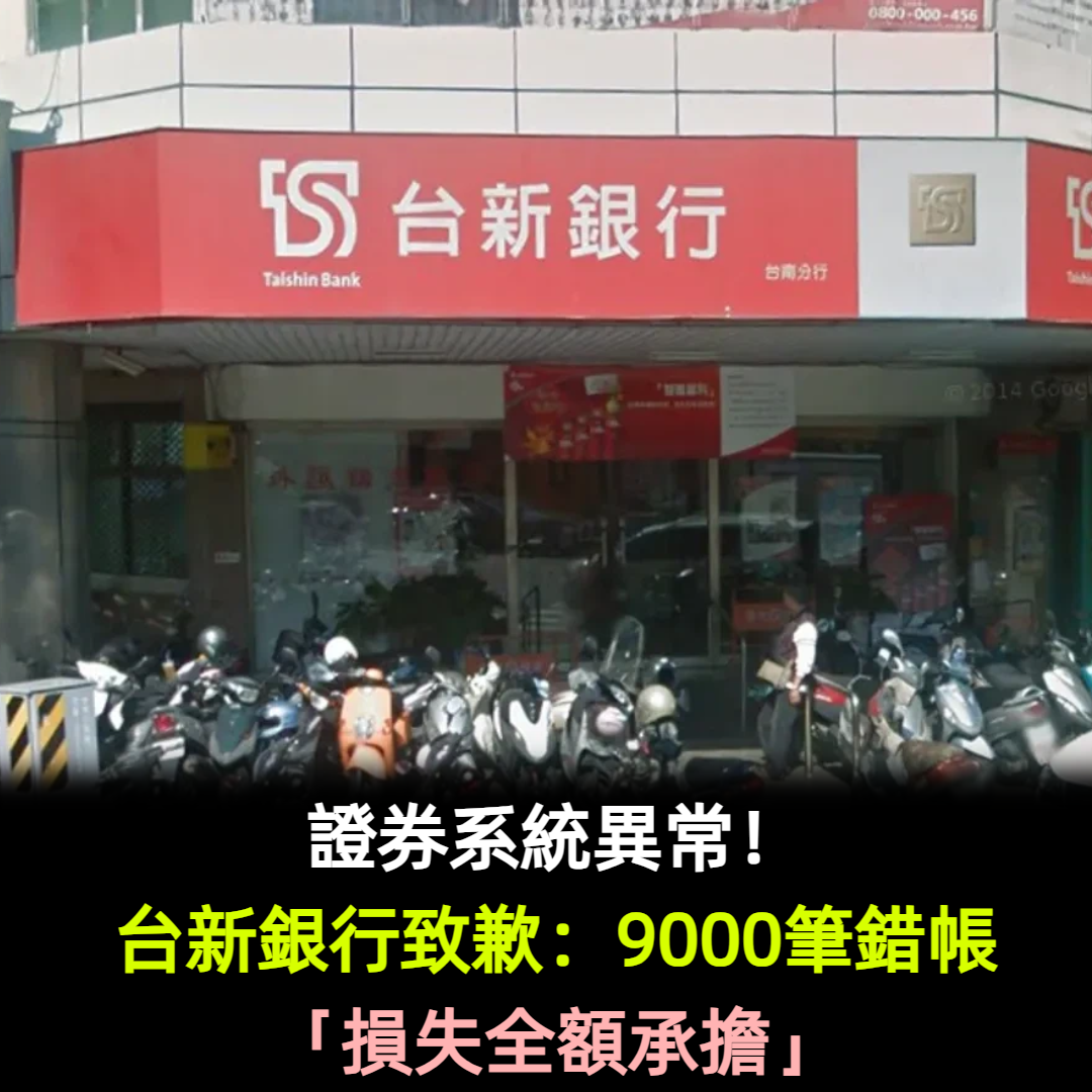 證券系統異常!台新銀行致歉:9000筆錯帳「損失全額承擔」