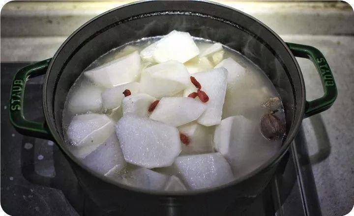 用白蘿蔔做湯,還有一個味道鮮美的訣竅就是,白蘿蔔做湯,必須加開水,剛才說過白蘿蔔打湯時,必須要切塊後下鍋小火煎至兩面微黃煎黃後,然後我們這一步,必須要直接加入開水,沒過白蘿蔔,如果加涼水,那麼白蘿蔔裡面的營養,就不容易釋放出來,打出的湯,鮮味就沒有這麼濃,所以這一個訣竅,朋友們也要記好。