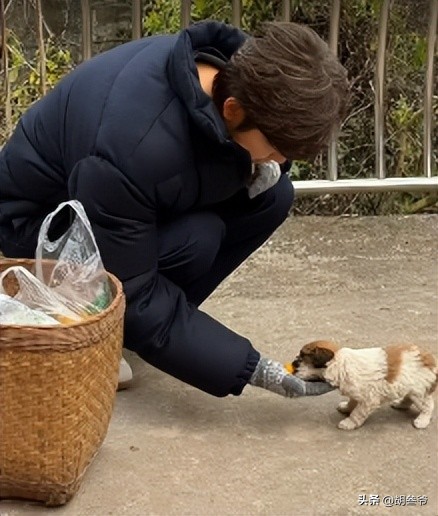 他低著頭,頭頂的白髮藏不住,手上戴著厚厚的手套禦寒,那樣子就像一個普通的小老頭,幾乎看不到沒有任何明星氣質了。